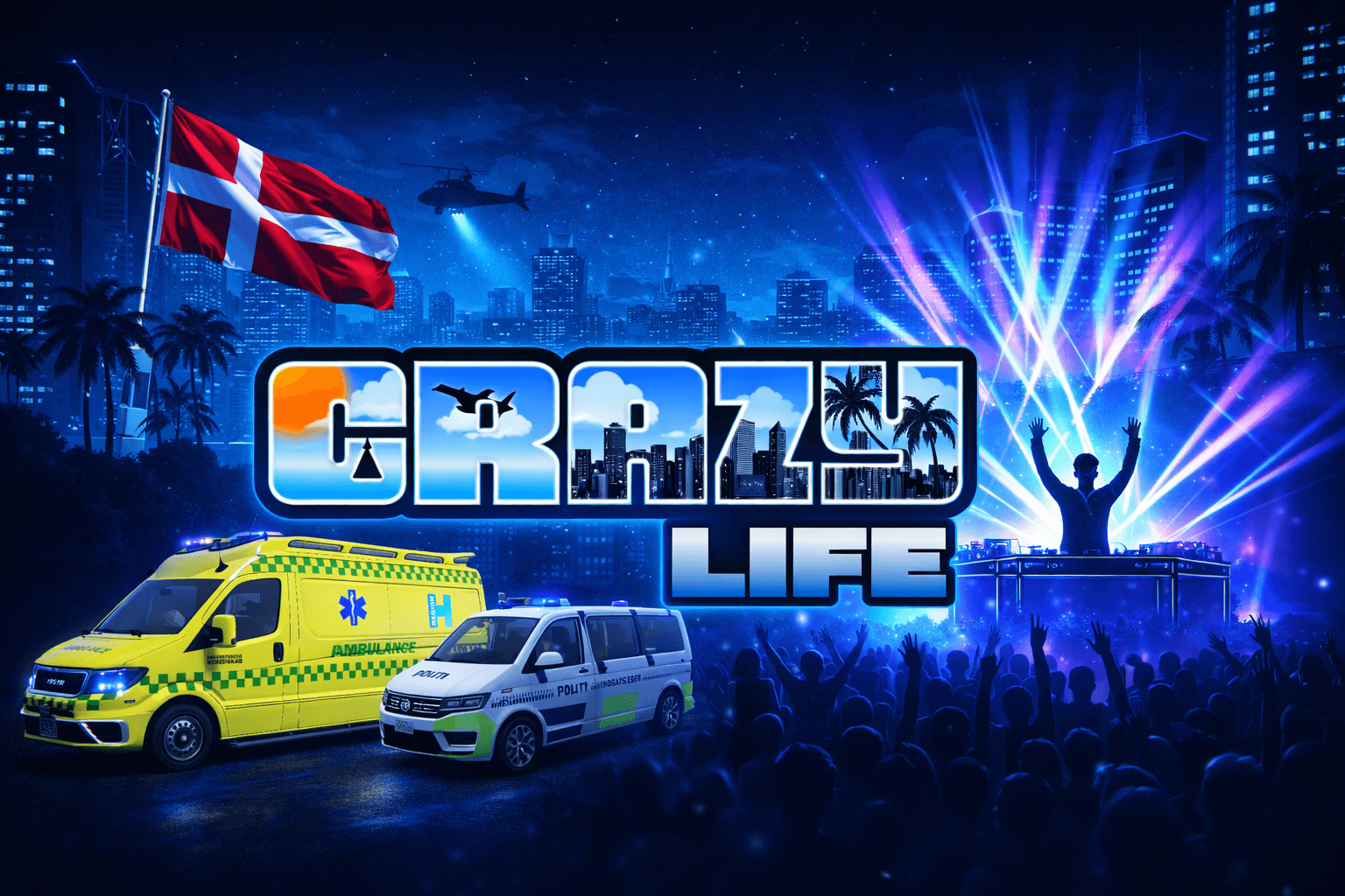 CrazyLife RP er en dansk FiveM Roleplay-server, skabt med fokus på realistisk RP, stærkt fællesskab og en stabil, velfungerende server.